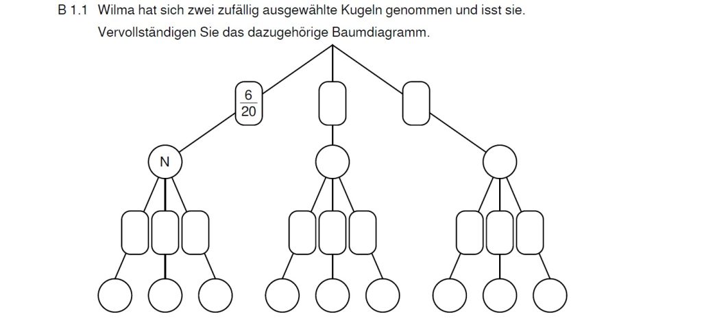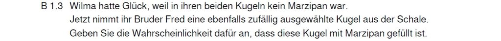 Die Aufgabe findet nicht im Baumdiagramm statt, sondern „nach dem Baumdiagramm“. Wieviele Marzipanpralinen gibt es noch? Wieviele sind noch insgesamt übrig?