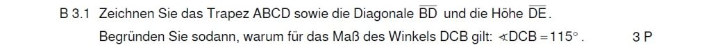 Aus der Angabe weißt du, dass bei ein 65°-Winkel ist. Es fehlen also noch 115° zu 180°. Der Winkel DCB muss also 115° haben.
