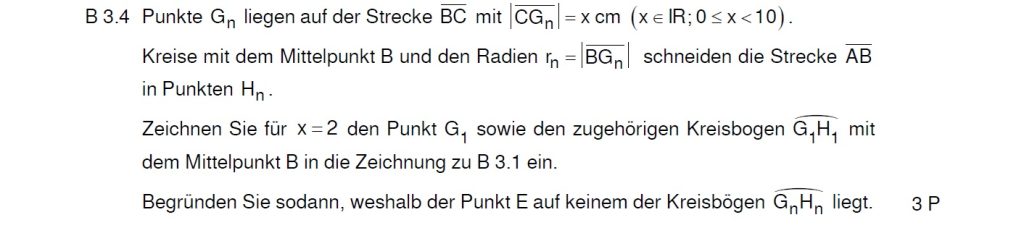 Der größte Kreis hat den Radius 10 cm – den Abstand von B zu C. Wenn der Abstand von B zu E größer ist, dann kann auch E nicht auf dem Kreisbogen liegen.