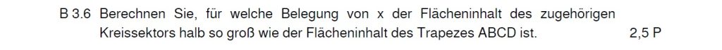 Halbiere den Flächeninhalt aus B3.3 und setze in mit der Formel gleich. Löse dann nach x auf.