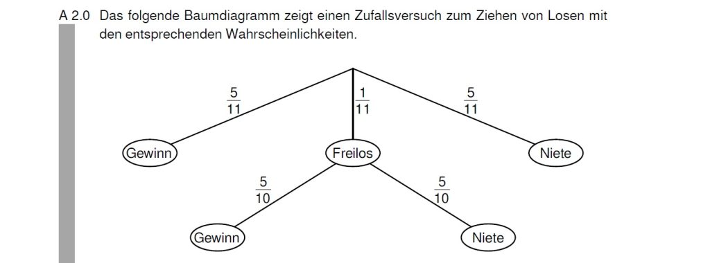 Aus einer Urne mit 11 Losen wird eines gezogen. Es gibt 5 Gewinne, 1 Freilos und 5 Nieten. Beim Freilos darf man nochmal ziehen.