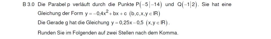 (II) y &= -0,4 x^2 +bx +c \,\,\, | \text{mit } Q(-1|2) \\