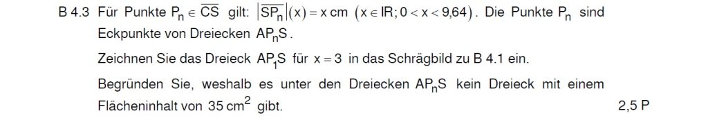 Das größte Dreieck entsteht, wenn P auf C liegt. In diesem Fall ist das Dreieck die „ganze Fläche“, die du in der Pyramide siehst. Jedes Dreieck ist kleiner als dieses Dreieck mit P auf C. Den Flächeninhalt dieses Dreiecks kannst du leicht aus den Angaben besteimmen: