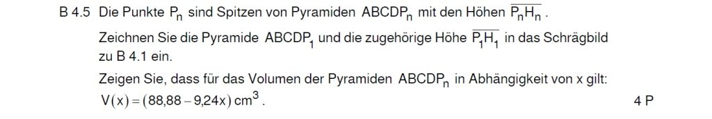 Für die vorgegebene Höhe von 4 kannst du das entsprechende Volumen bestimmen. Das ist das „Ergebnis“, das die Formel aus 4.5 ergeben soll.